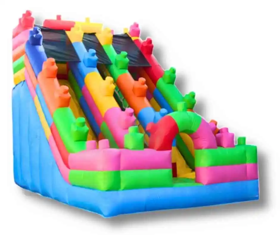 Zjeżdżalnia w motywie klocków zachwyci każdą osobę. Szybki ślizg gwarantują fantastyczną zabawę pełną śmiechu.